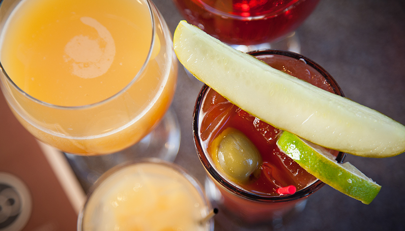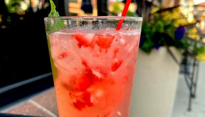 Prosecco, muddled peach, Angostura Bitters, lemon, Demerara Simple syrup, peach bitters