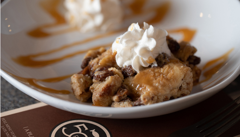 Premium supper club recipe served with caramel sauce and whipped cream. (V) 4.99
