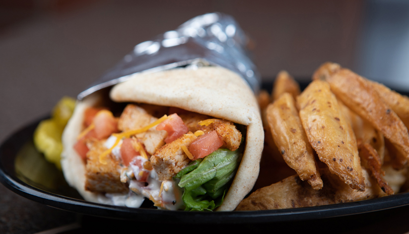 Cajun chicken breast with lettuce, tomatoes, onion, cheddar cheese and our cilantro lime sauce in a warm pita. 16.99
