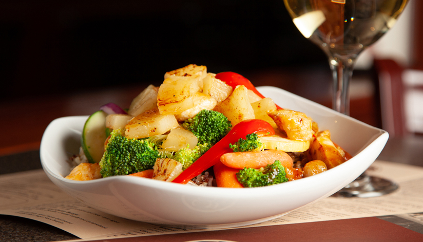 Quinoa and brown rice topped with Asian glazed chicken, pineapple and fresh steamed veggies. (GF, DF) 17.99