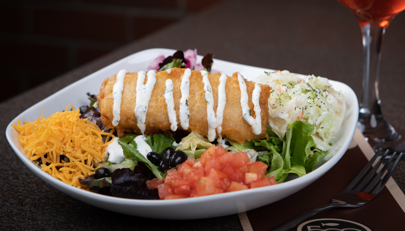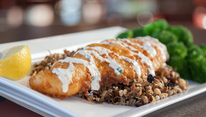 Beer battered cod, cabbage, lettuce, tomatoes, black beans, onion, cheddar cheese and our cilantro lime sauce wrapped in a warm pita. 15.99