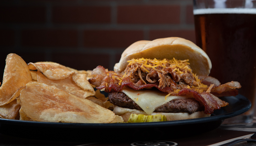 Slow-roasted pulled pork topped with pepper jack cheese, bacon and our housemade Ragtop BBQ sauce. 15.99
