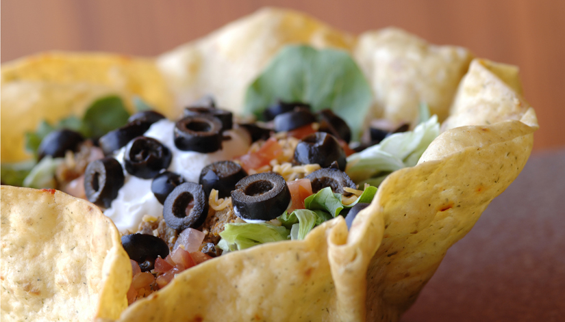 Tortilla strips, mixed greens, taco meat, cheddar cheese, black olives, tomatoes, sour cream and taco sauce. 15.99