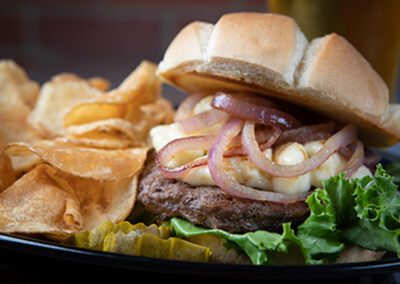Topped with white cheddar curds, caramelized onions and Worcestershire aioli. 15.99