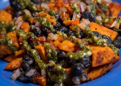 Fresh steamed veggies, black beans and peanut crumbles on a bed of quinoa and brown rice with a full-flavored Thai peanut sauce. (VG, DF) 14.99